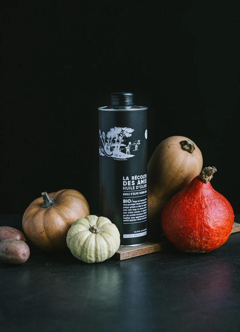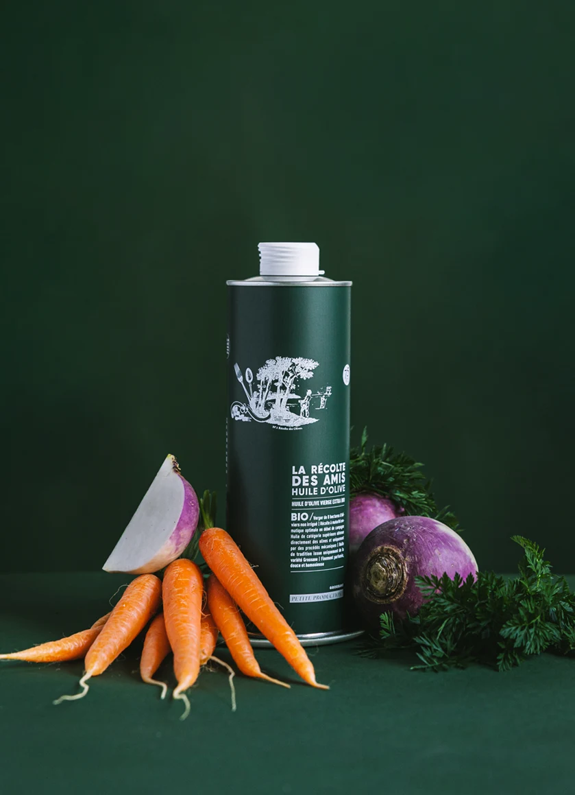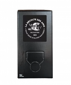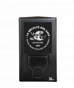 Nos trois huiles sont issues du seul et même verger que nous chérissons, et le choix d’un conditionnement pratique, opaque, léger et moins fragile que le verre, nous a paru évident : le bidon en métal et le BIB qui assurent une excellente conservation de l’huile en la protégeant de ses principales sources d’oxydation et d’altération, l’air et la lumière.