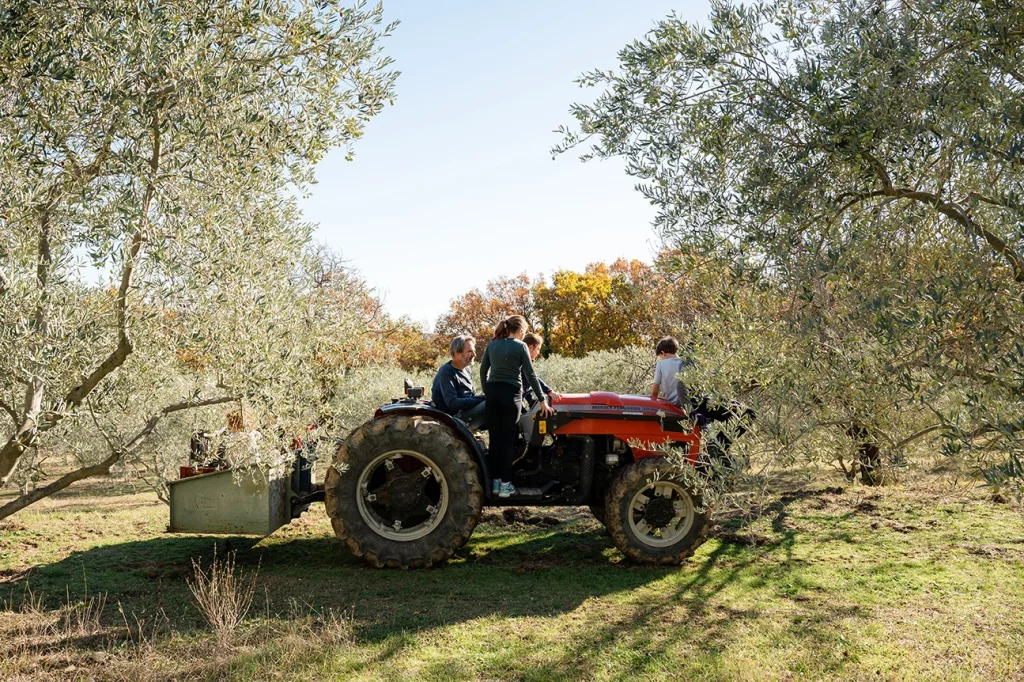 C’est le nom de cette ancienne bergerie dans laquelle nous vivons et produisons en famille. Une famille qui n’a rien d’un kibboutz puisque chez les Favre, nous ne sommes que quatre ! Julie-Marie et Richard, et nos enfants Gaston et Marie. Juste à côté, aux pieds d’une colline, bordés de chênes, s’étendent les 8 hectares d’oliviers que nous avons plantés dont 95 % de variété Aglandau et  5 % d’oliviers pollinisateurs de variétés Grossanne, Bouteillan et Picholine.